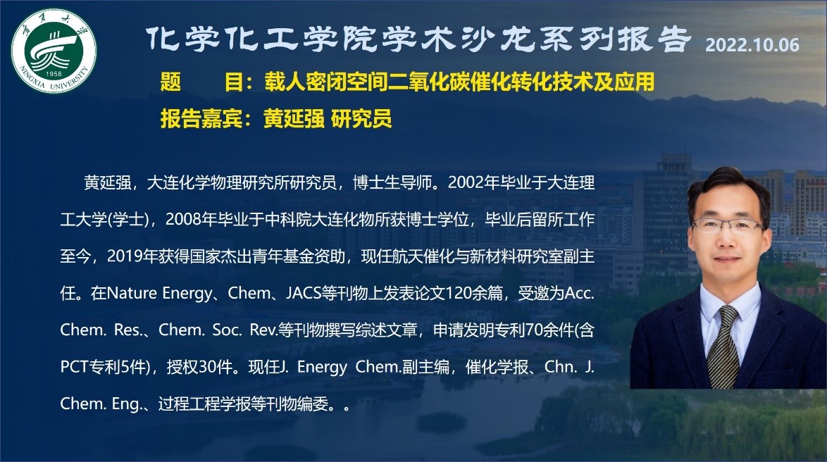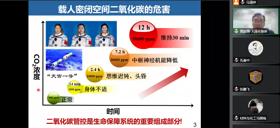 2022年秋季学术沙龙系列报告会在线上举行,大连化学物理研究所航天催化与新材料研究室副主任黄延强研究员做了题为“载人密闭空间二氧化碳催化转化技术及应用”的报告。91黑料