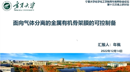 年佩博士以“面向气体分离的金属有机骨架膜的可控制备”为题作了报告,围绕金属氧化物异相诱导制备高性能MOF膜、超薄纳米片式MOF膜的可控制备两方面,探讨了如何通过在微观、介观、宏观尺度上进行精密MOF气体分离膜的调控。