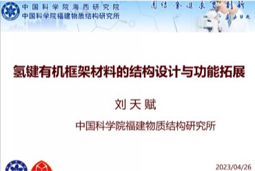 刘天赋研究员以“氢键有机框架材料的结构设计与功能拓展”为题作了报告,介绍了氢键有机框架化合物(HOFs)的合成、表征以及其在催化、气体分离、生物等交叉领域的应用。重点介绍了一系列有效提升框架材料稳定性的策略,如引入更强分子间π-π作用、构建离子型框架、调控二维层的构型及拓扑网络等,为高性能HOFs材料的合成提供了解决思路。