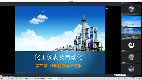 2021~2022学年度第一学期本科期中教学检查安排》的通知”的要求,化工系围绕提高线上教学质量以及课程思政的落实情况,开展了期中教学检查工作,组织全系教师集中观摩了《化工仪表及自动化》、《精细有机合成原理》等课程的线上课堂,并于2021年11月12日进行了线上的集体讨论。