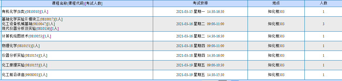 2020-2021学年第二学期2019届延期毕业生重修考试安排